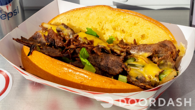 | CHOPPED BURGER, ONIONS, PEPPERS, TOPPED WITH CHEESE, |